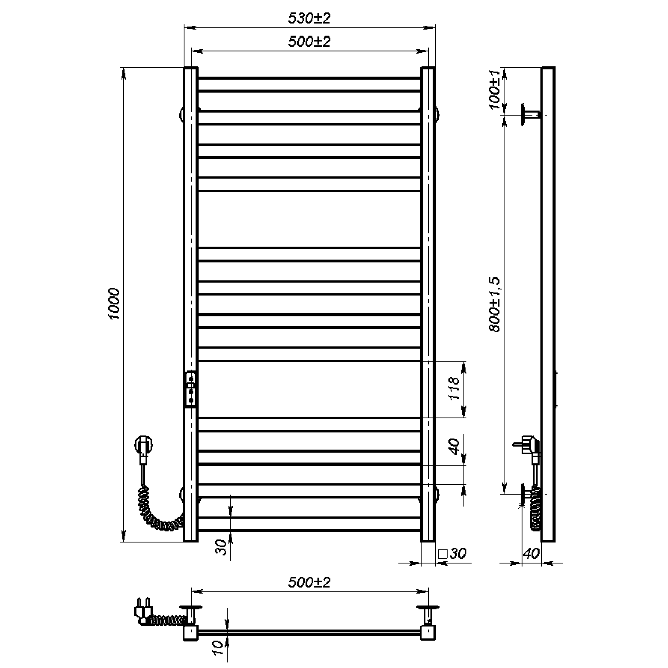 Основні характеристики Рушникосушарка електрична Sirius (1000*500,12,Сіра,Ліве підключення,JD04)