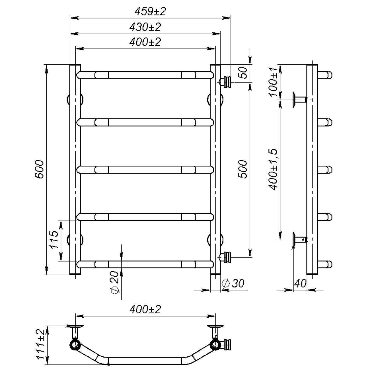 Основні характеристики Рушникосушарка водяна Ava (600*400,5,Сіра,Праве підключення)