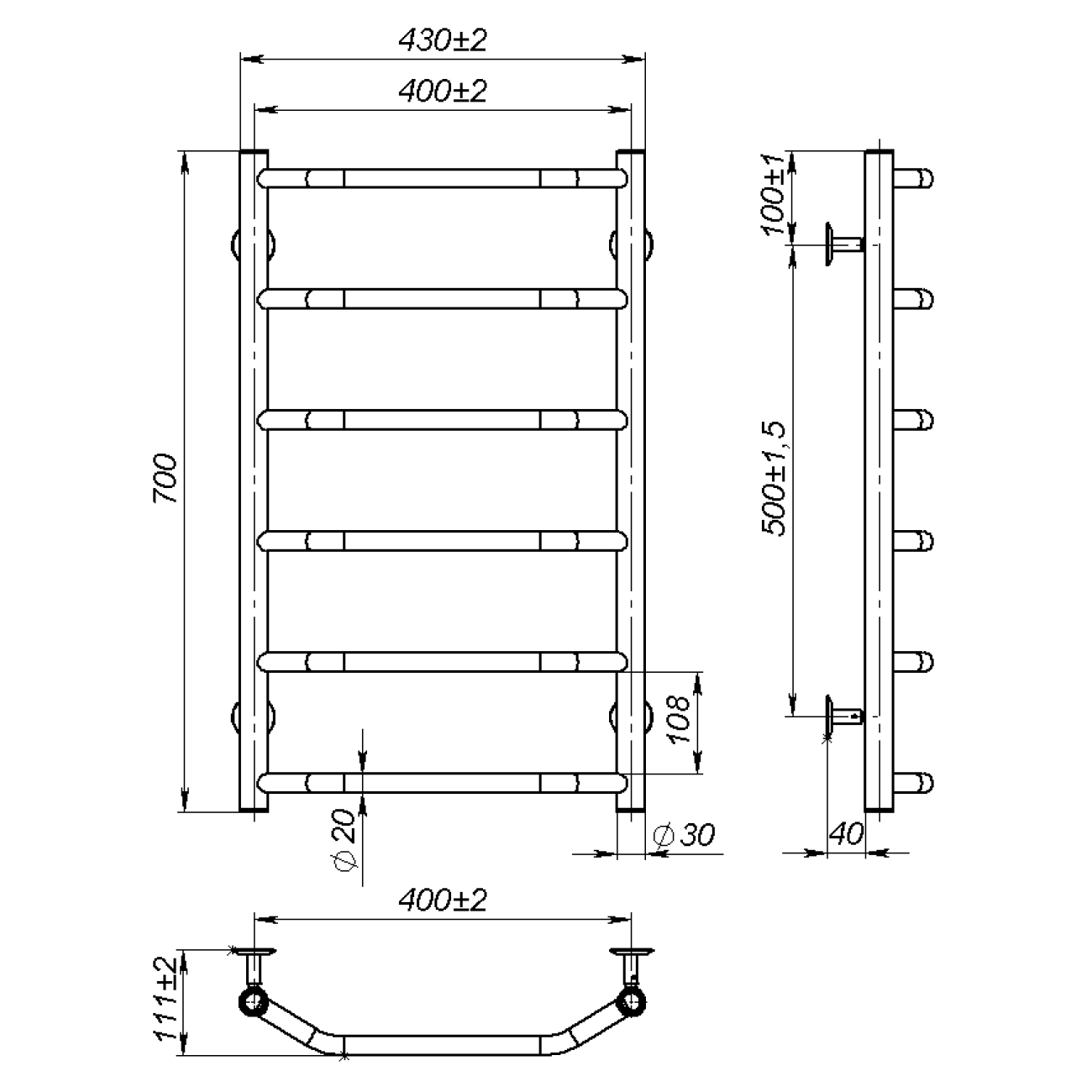 Основні характеристики Рушникосушарка водяна Ava (700*400,6,Чорна,Нижнє підключення)