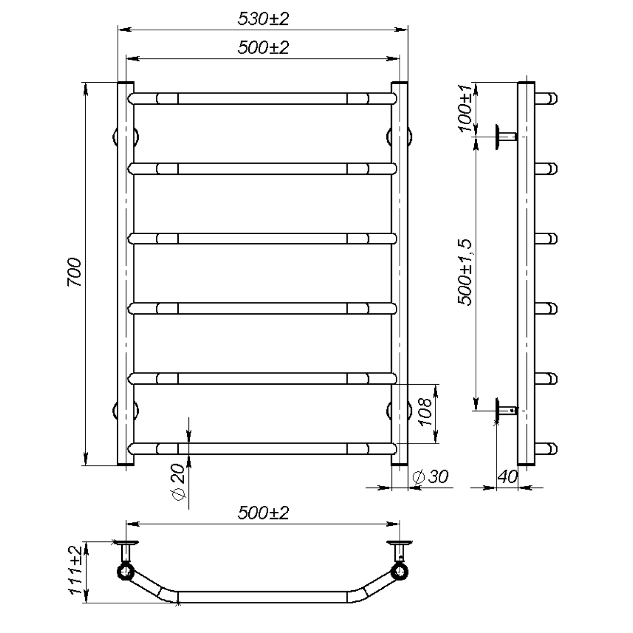 Основні характеристики Рушникосушарка водяна Ava (700*500,6,Сіра,Нижнє підключення)