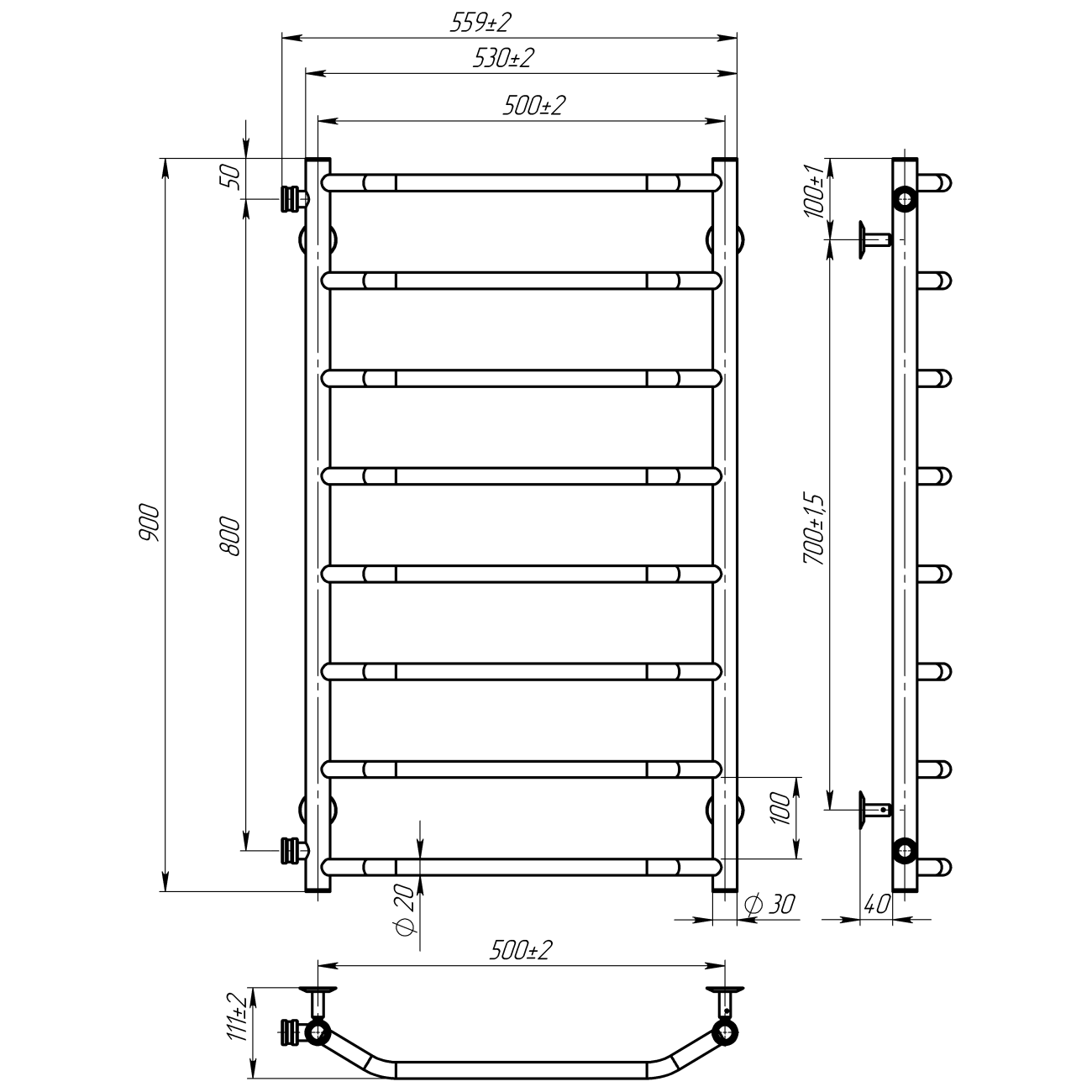 Основні характеристики Рушникосушарка водяна Ava (900*500,8,Біла,Ліве підключення)