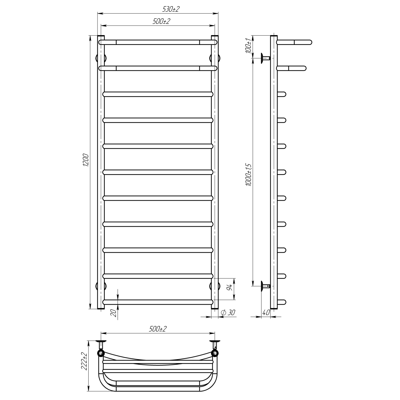 Основні характеристики Рушникосушарка водяна Optima (1200*500,11,Полірована,Нижнє підключення)