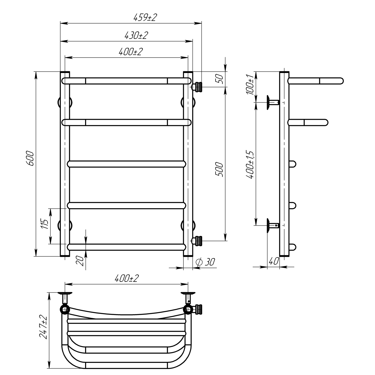 Рушникосушарка водяна Optima (600*400,5,Біла,Праве підключення)