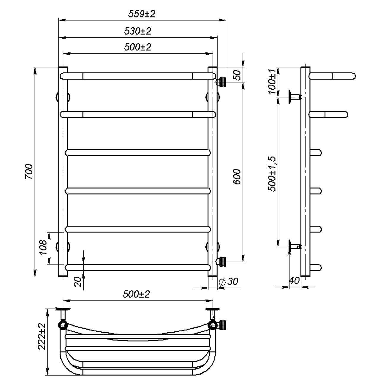 Основні характеристики Рушникосушарка водяна Optima (700*500,6,Полірована,Праве підключення)