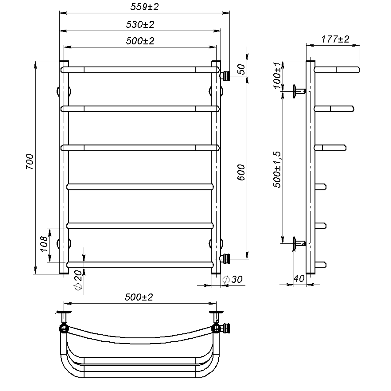 Основні характеристики Рушникосушарка водяна Prima (700*500,6,Полірована,Праве підключення)