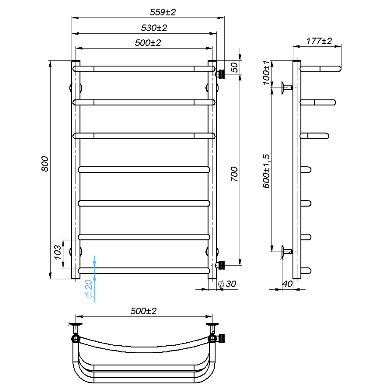 Опис Рушникосушарка водяна Prima (800*500,7,Біла,Праве підключення)