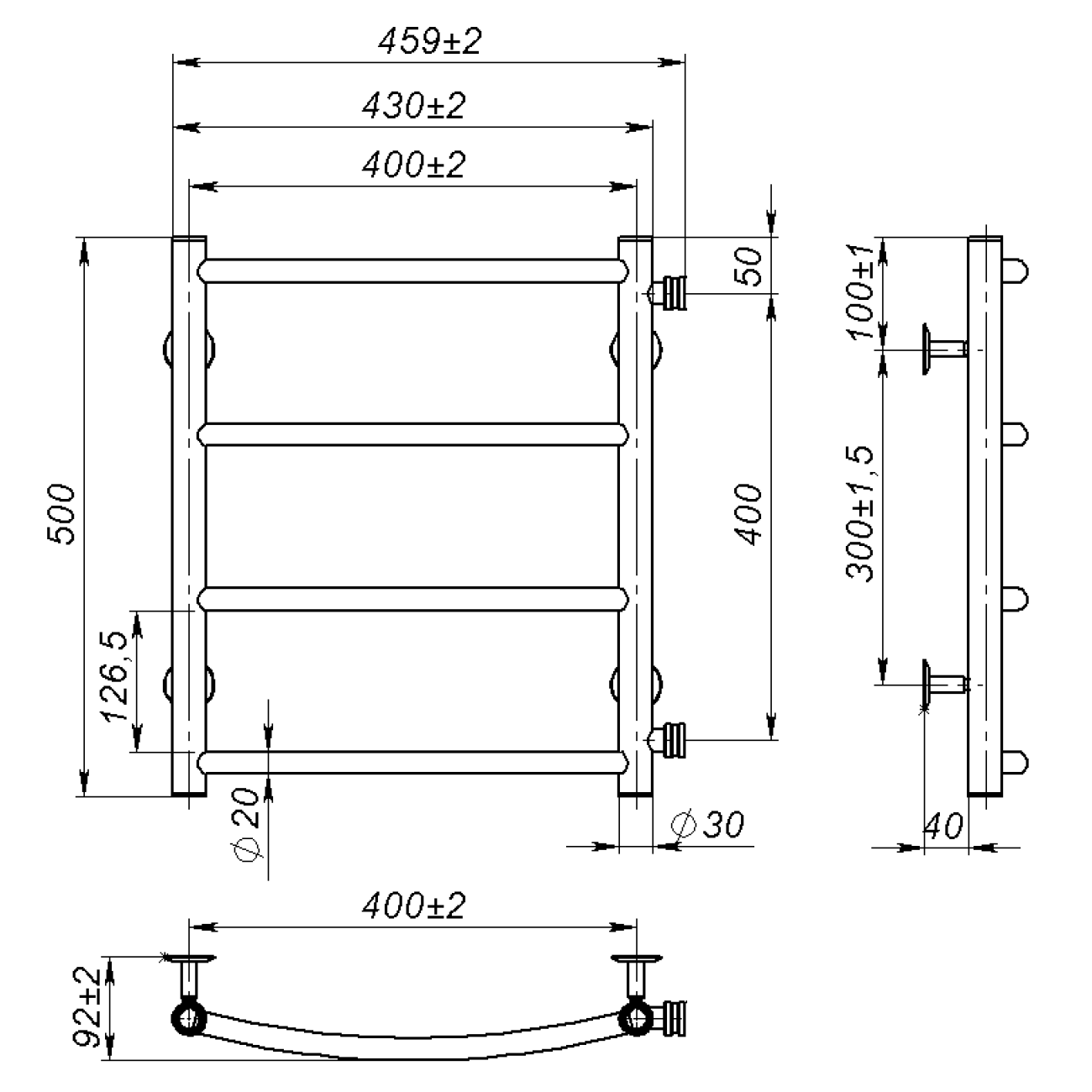 Основні характеристики Рушникосушарка водяна Sora (500*400,4,Полірована,Праве підключення)
