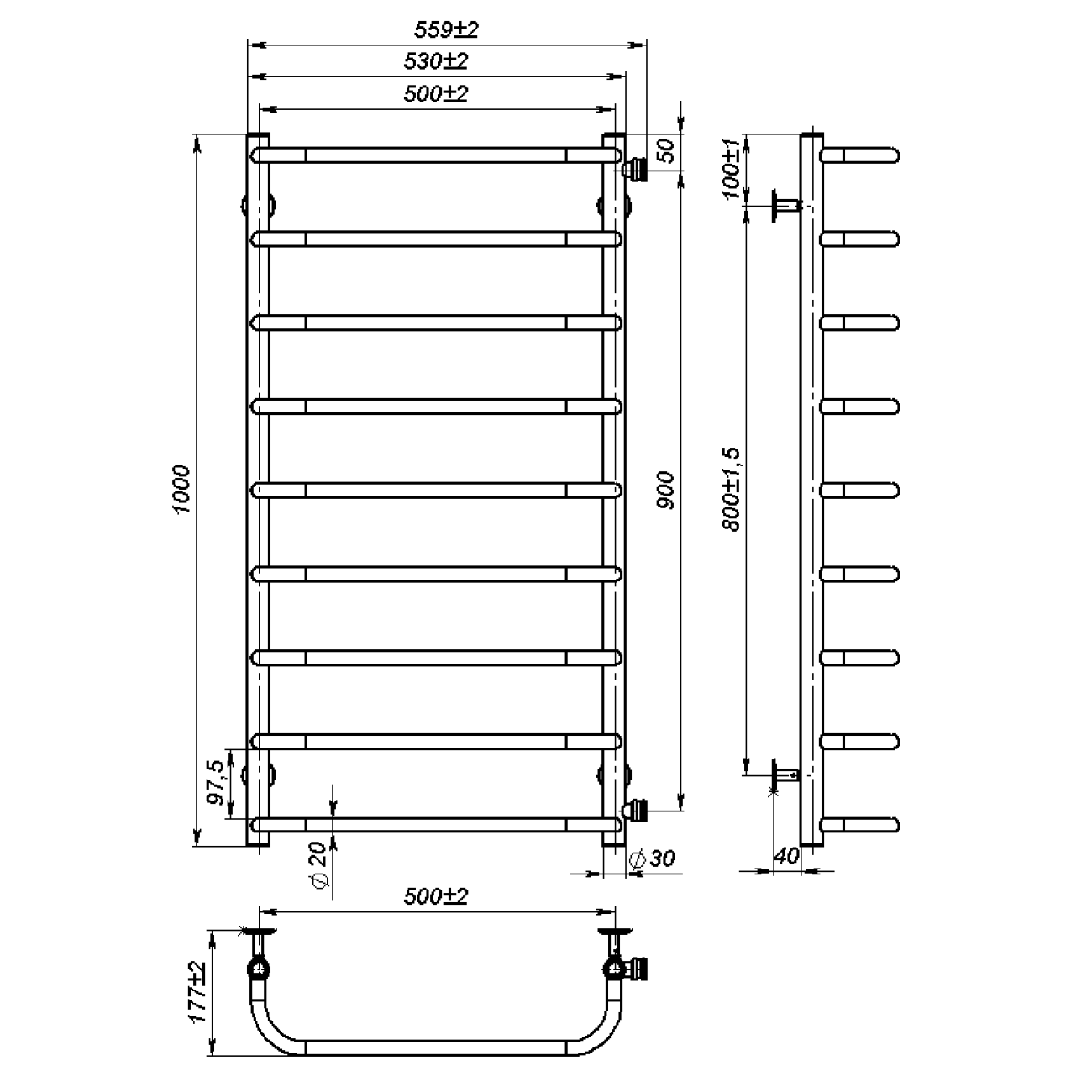 Опис Рушникосушарка водяна Sunny (1000*500,9,Сіра,Праве підключення)