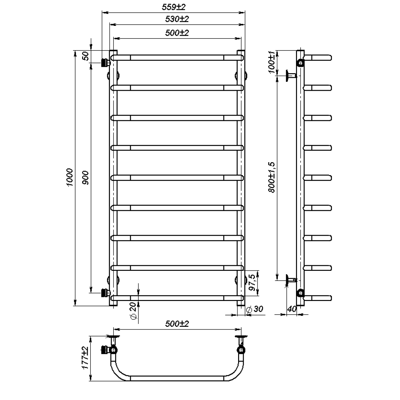 Основні характеристики Рушникосушарка водяна Sunny (1000*500,9,Біла,Ліве підключення)