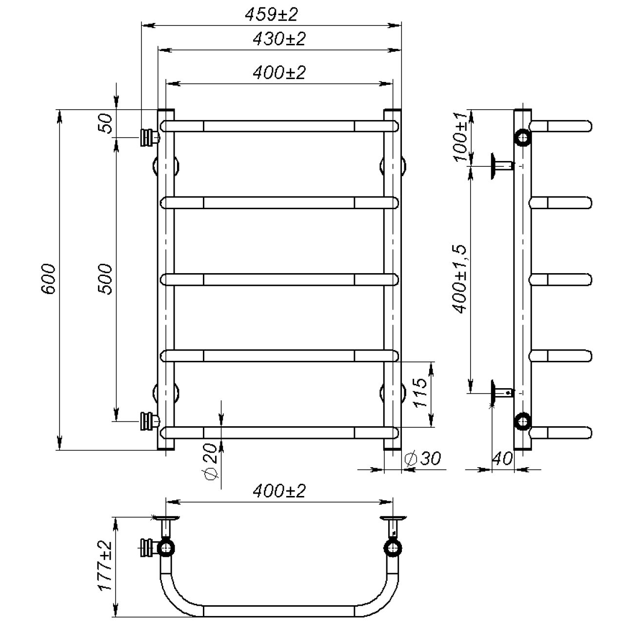 Опис Рушникосушарка водяна Sunny (600*400,5,Полірована,Ліве підключення)