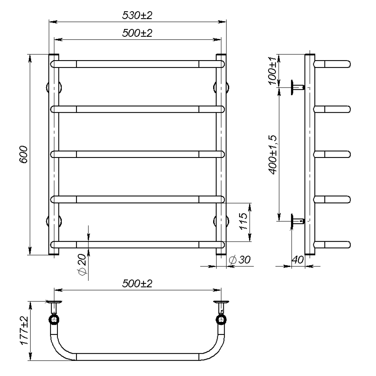 Основні характеристики Рушникосушарка водяна Sunny (600*500,5,Біла,Нижнє підключення)