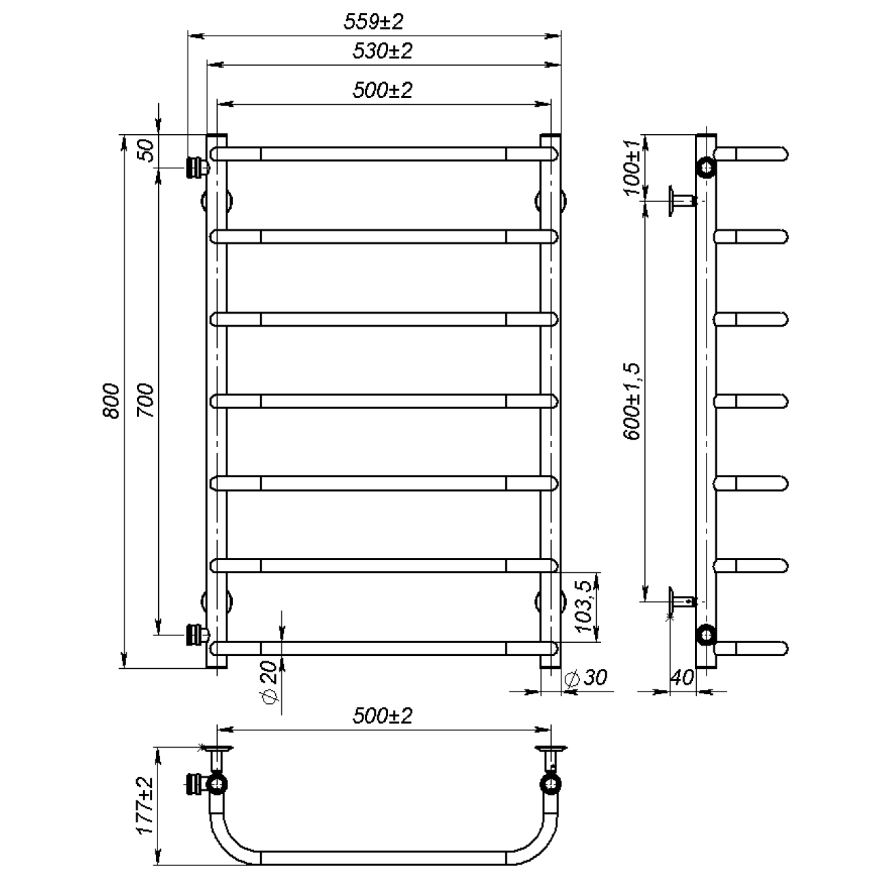 Опис Рушникосушарка водяна Sunny (800*500,7,Сіра,Ліве підключення)